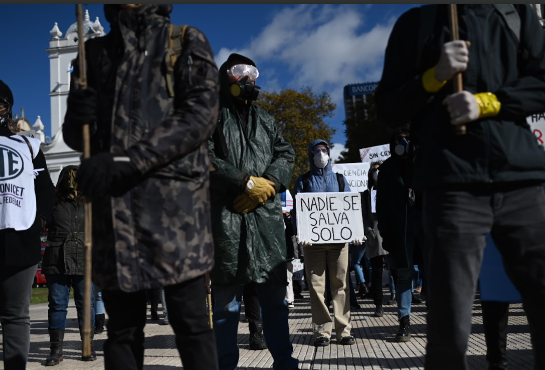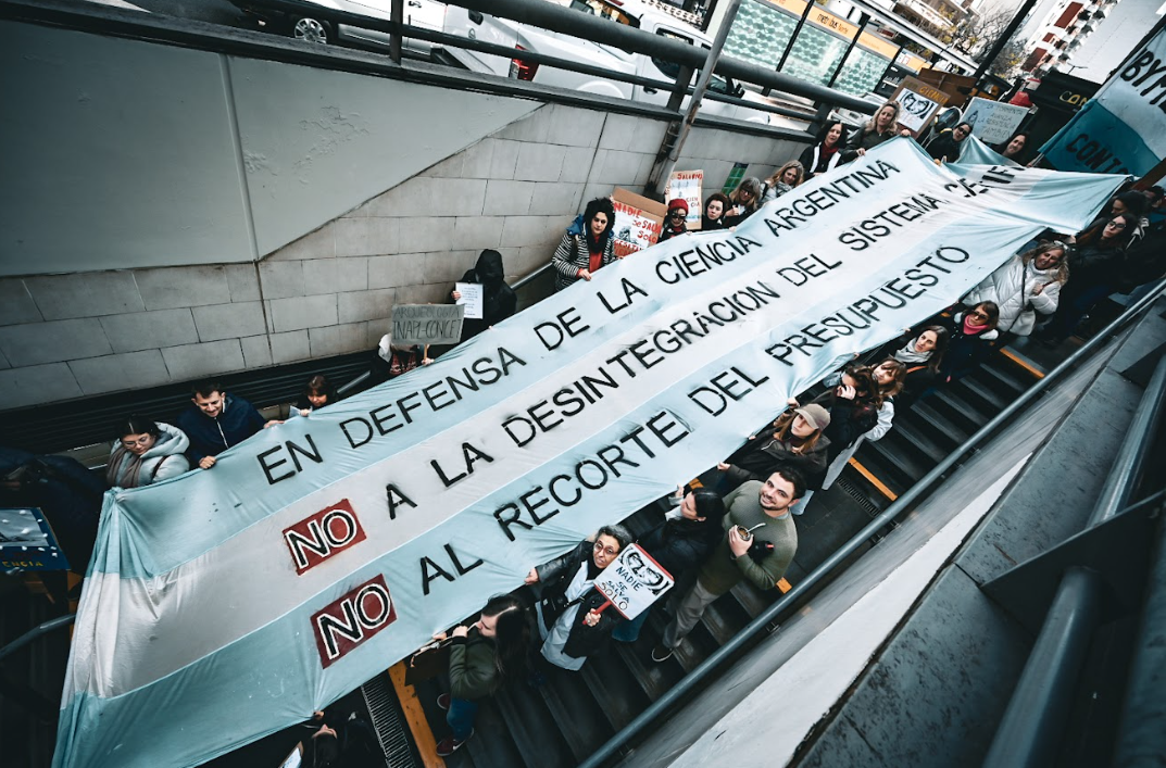 Esa historia no fue lineal ni uniforme. Hubo crisis, exilios y regresos. Ahora se construye con resistencias: en los laboratorios sin insumos, en la falta de becas, en los grupos de investigación que ya no tienen cómo seguir. El pasado 28 de mayo, miles de investigadoras, técnicos, becarios, docentes y trabajadores del sistema científico argentino salieron a la calle disfrazados de Eternautas. La nieve tóxica que enfrentaban no era una ficción: eran los despidos, el desfinanciamiento, el vaciamiento de instituciones fundamentales como el CONICET y la Agencia Nacional de Promoción Científica. En esa puesta en escena no hubo nostalgia, sino una advertencia: sabemos que está en juego el país y no vamos a callarnos.